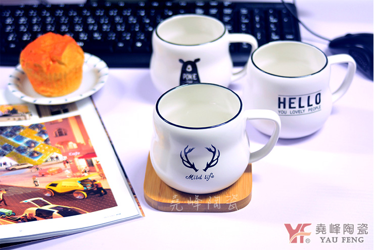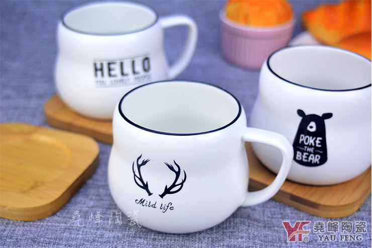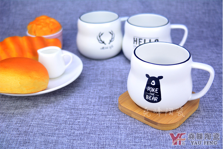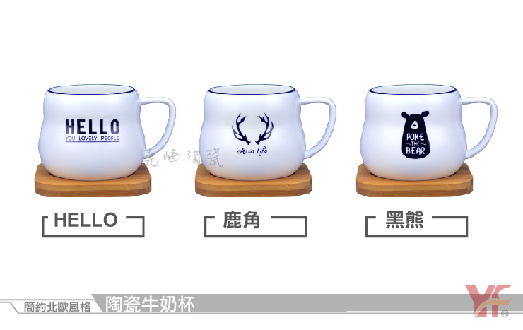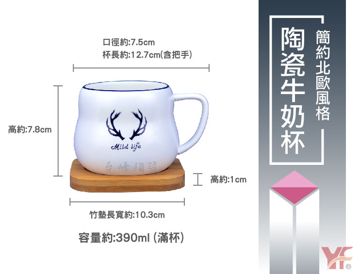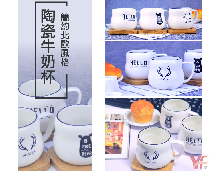 簡約北歐風格 陶瓷牛奶杯 (附贈竹杯墊)